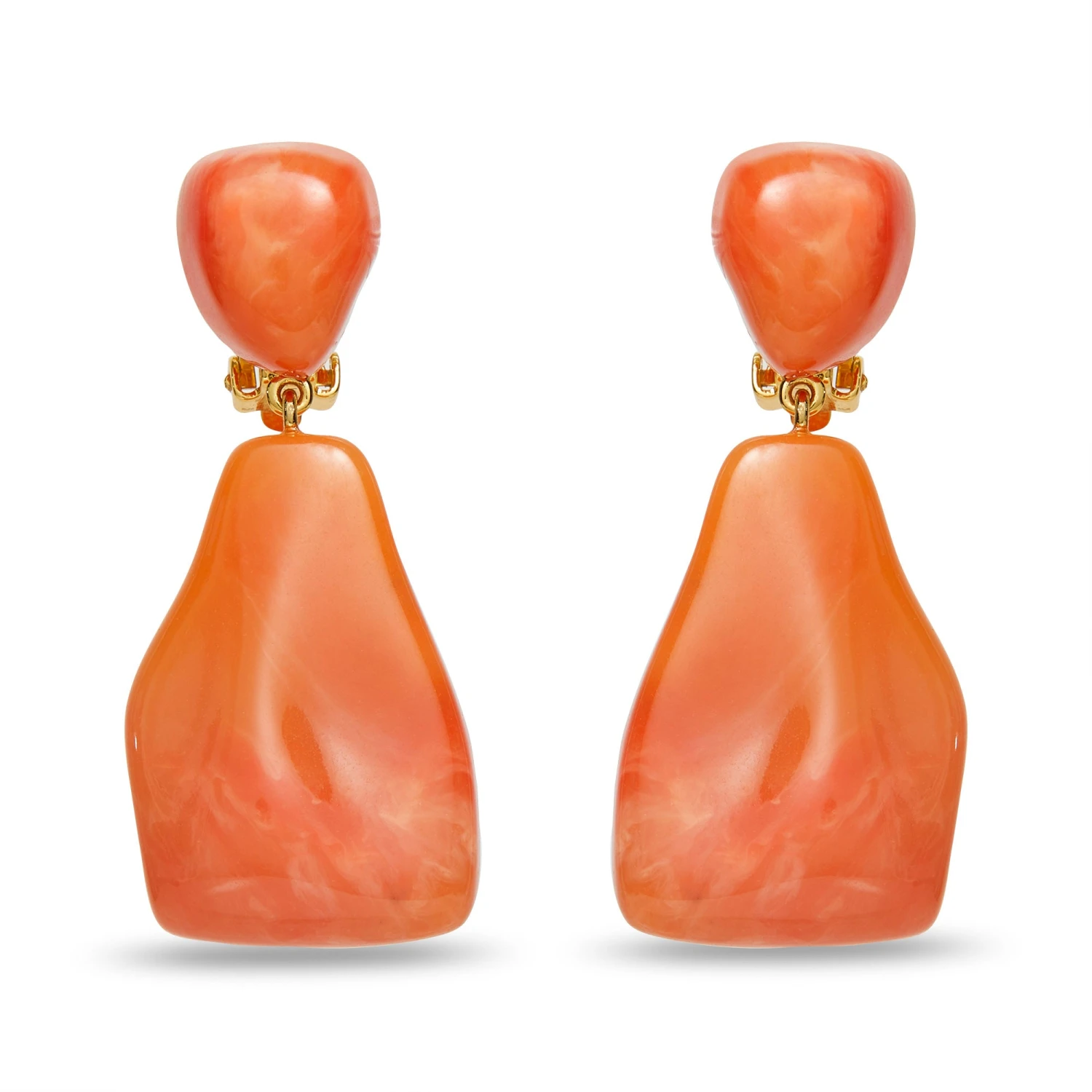 ∙ Orange hand-swirled resin suspended from an orange resin asymmetrical post