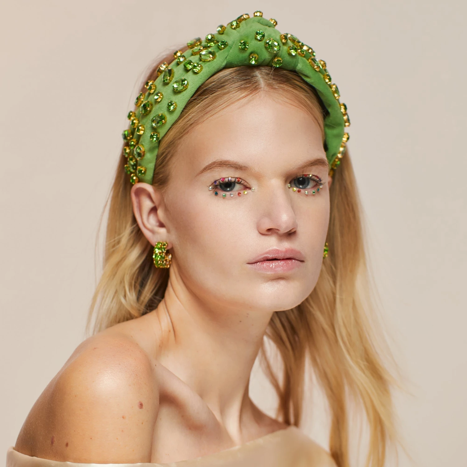 AUGUST PERIDOT OVAL CRYSTAL VELVET KNOTTED HEADBAND