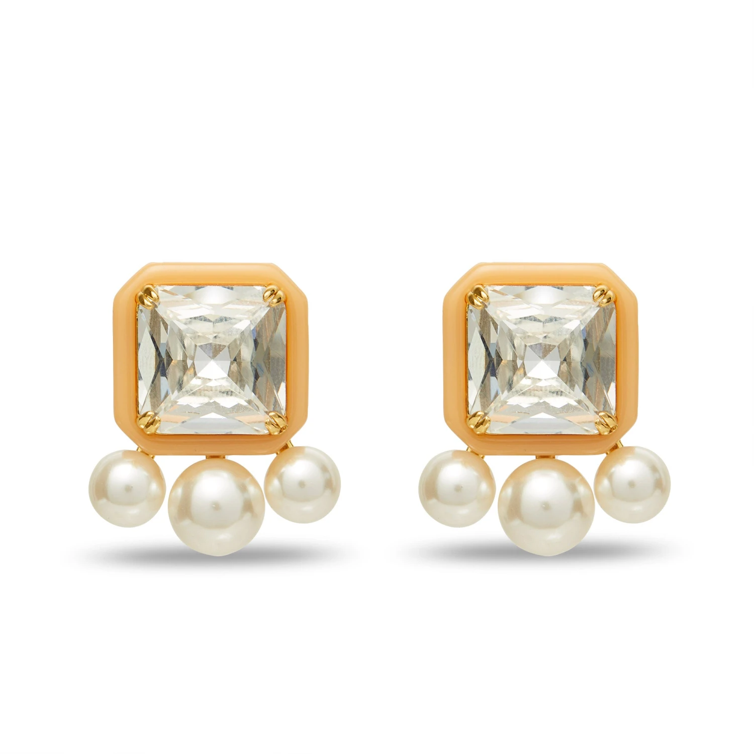∙ Clear square crystal bezel set in bisque enamel