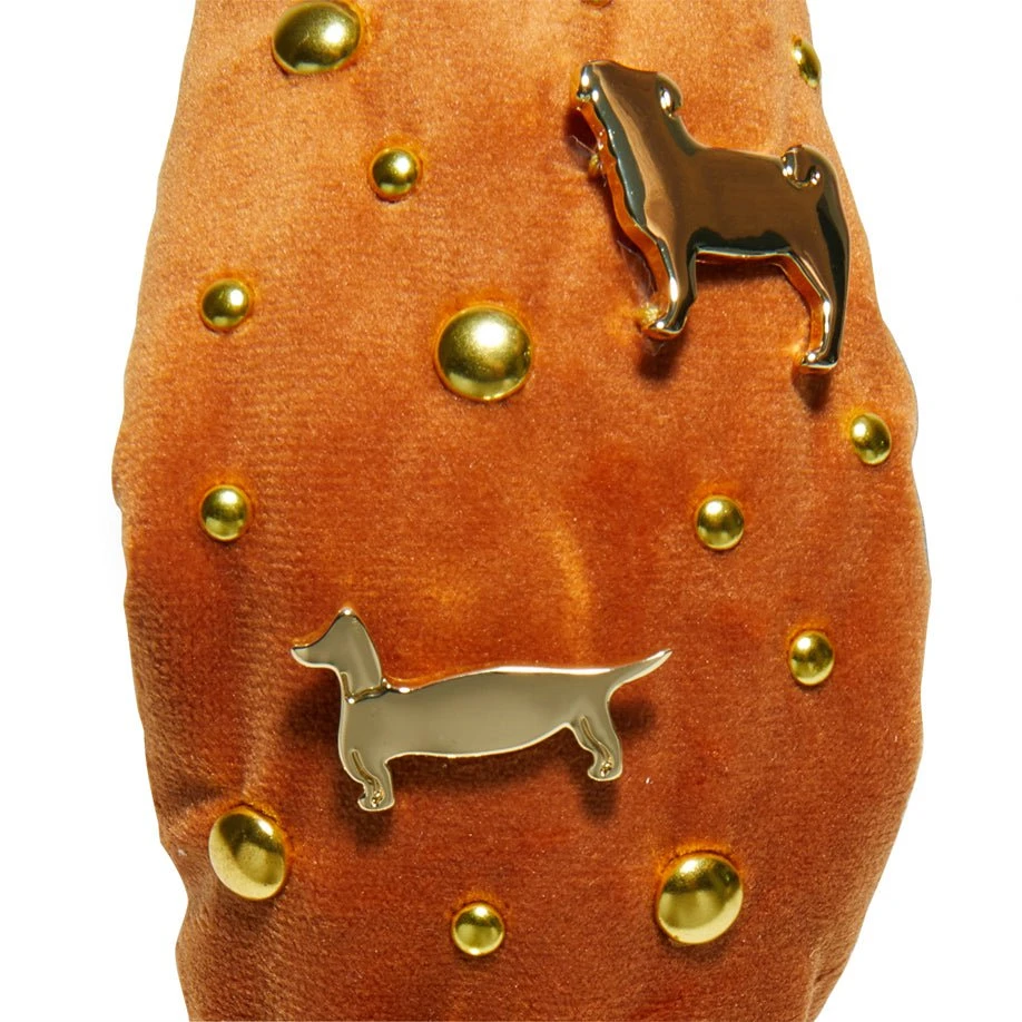 ∙ Hand-embellished with 14k gold plated studs and dog charms