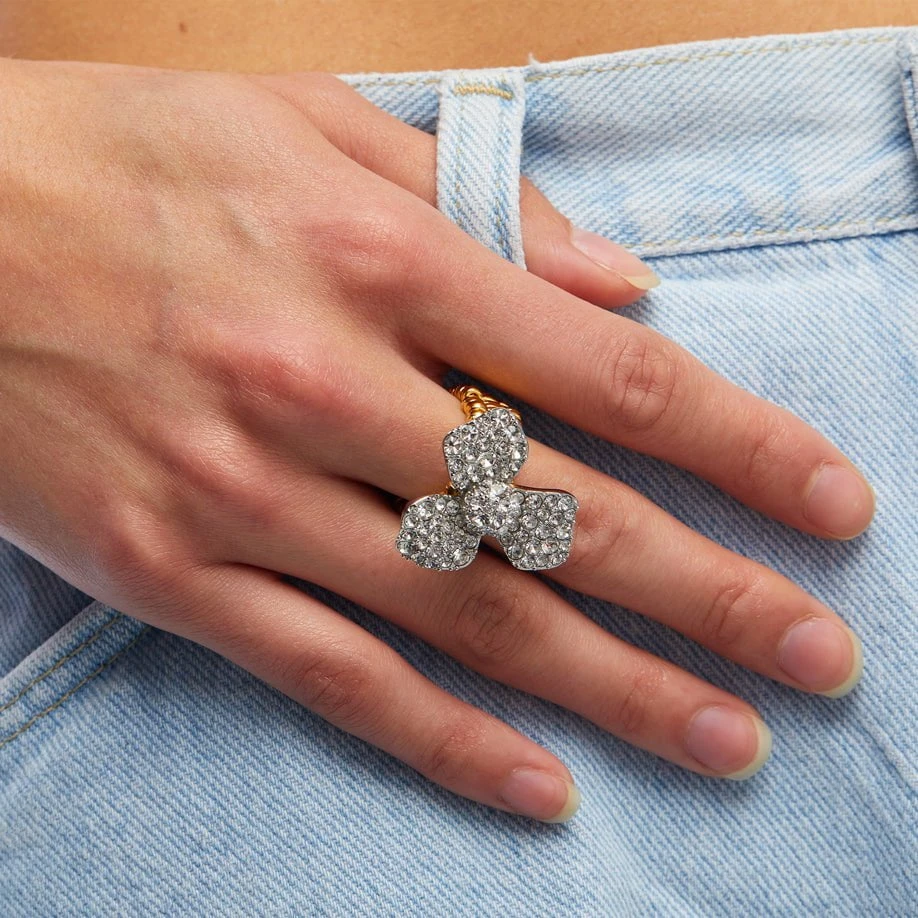 ∙ Silver plated trillium charm featuring hand set pave crystals