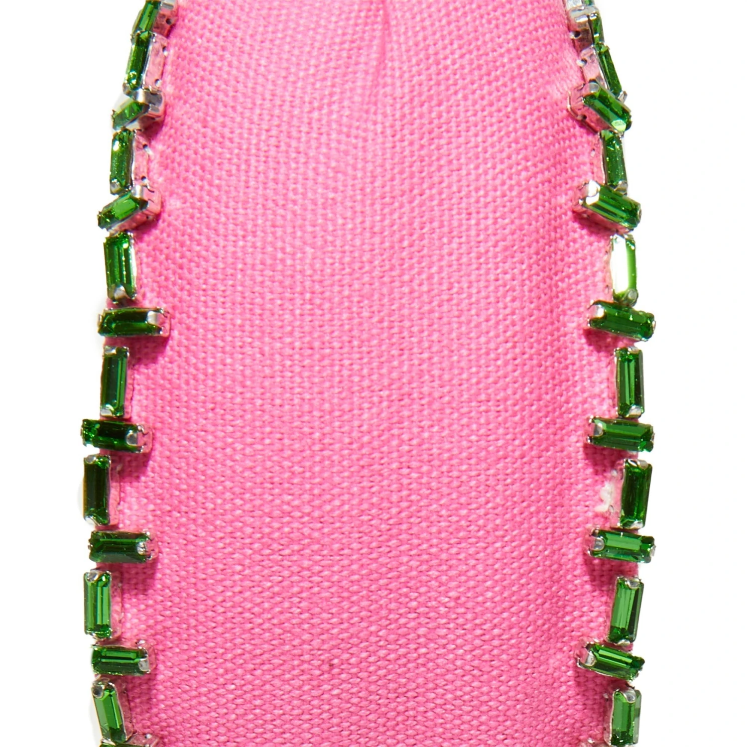 ∙ Hand-embellished with rectangular green crystal trim