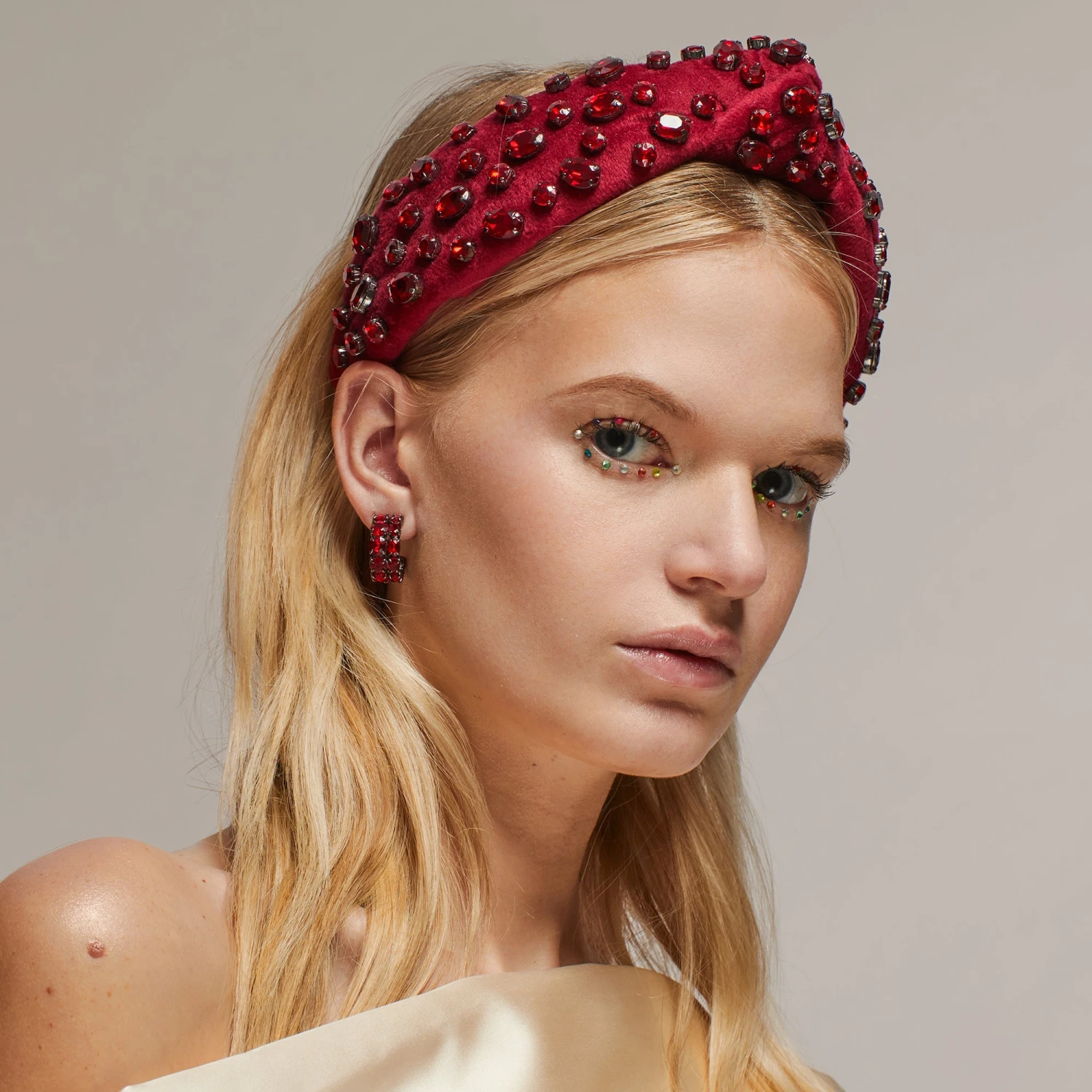 JANUARY GARNET OVAL CRYSTAL VELVET KNOTTED HEADBAND