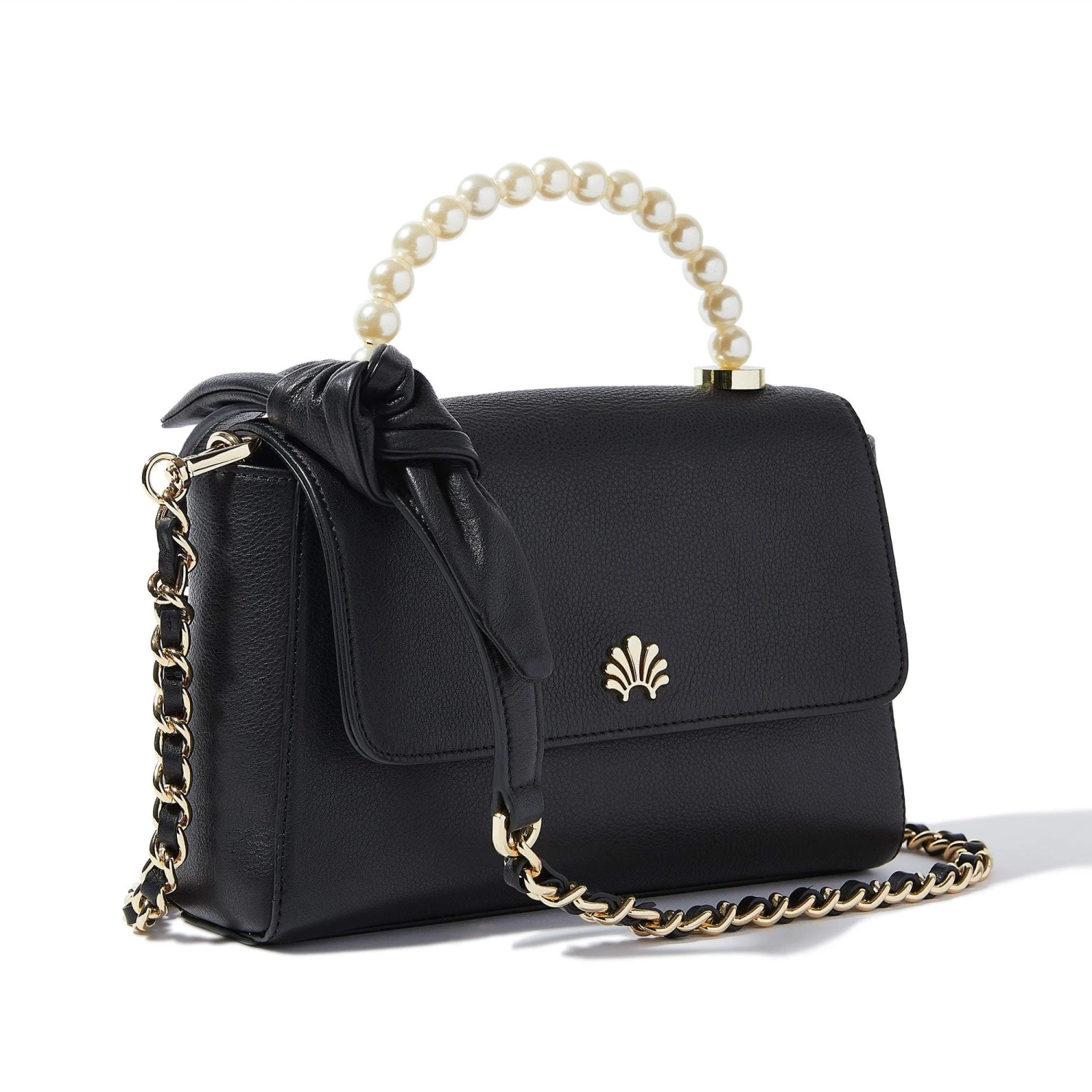 ∙ 43″ leather and 14k gold plated cross body chain featuring a leather knot reminiscent of our classic bowtie headband