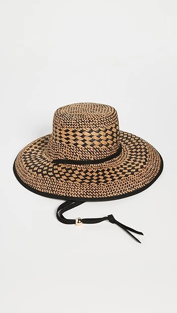 A practical summertime accessory with striking good looks, this Lele Sadoughi straw hat features a unique check motif and is outfitted with a suede band.
