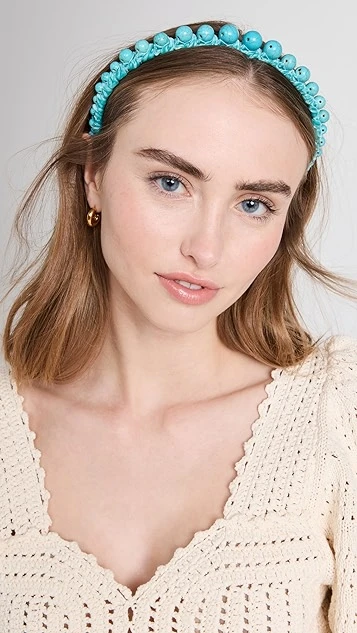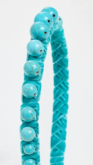 A unique addition to your accessories collection, this thin Lele Sadoughi headband features a tapering row of turquoise-colored beads.