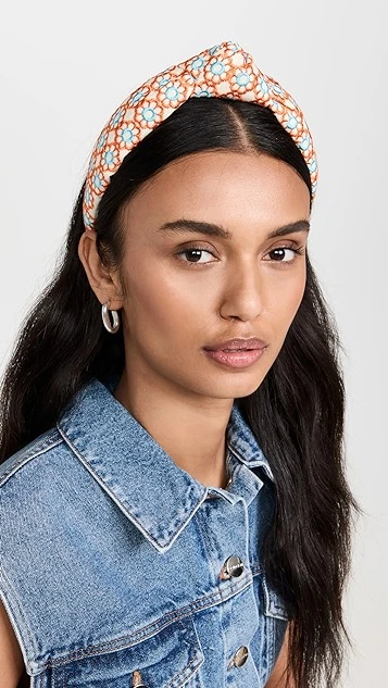 Precise embroidered floral patterning in a creative mix of colors distinguishes this knotted headband from the accessories specialists at Lele Sadoughi.
