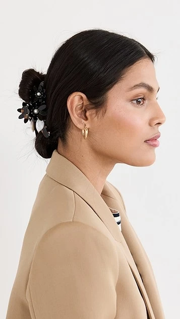 A charming finish for any look, this Lele Sadoughi hair clip is crafted from shimmery, dark colored acetate and accented with floral and imitation pearl details.