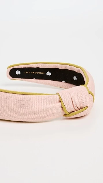 A Lele Sadoughi knotted headband, rendered in a light-pink weave and accented with touches of contrast piping in a unique shade.