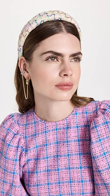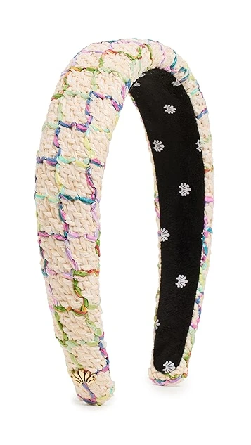 Colorful strands of thread help create a grid motif across this charming Lele Sadoughi padded headband.