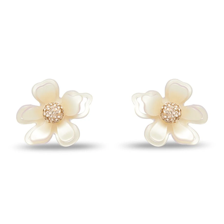 ∙ Cream acetate azalea earrings featuring handset petals