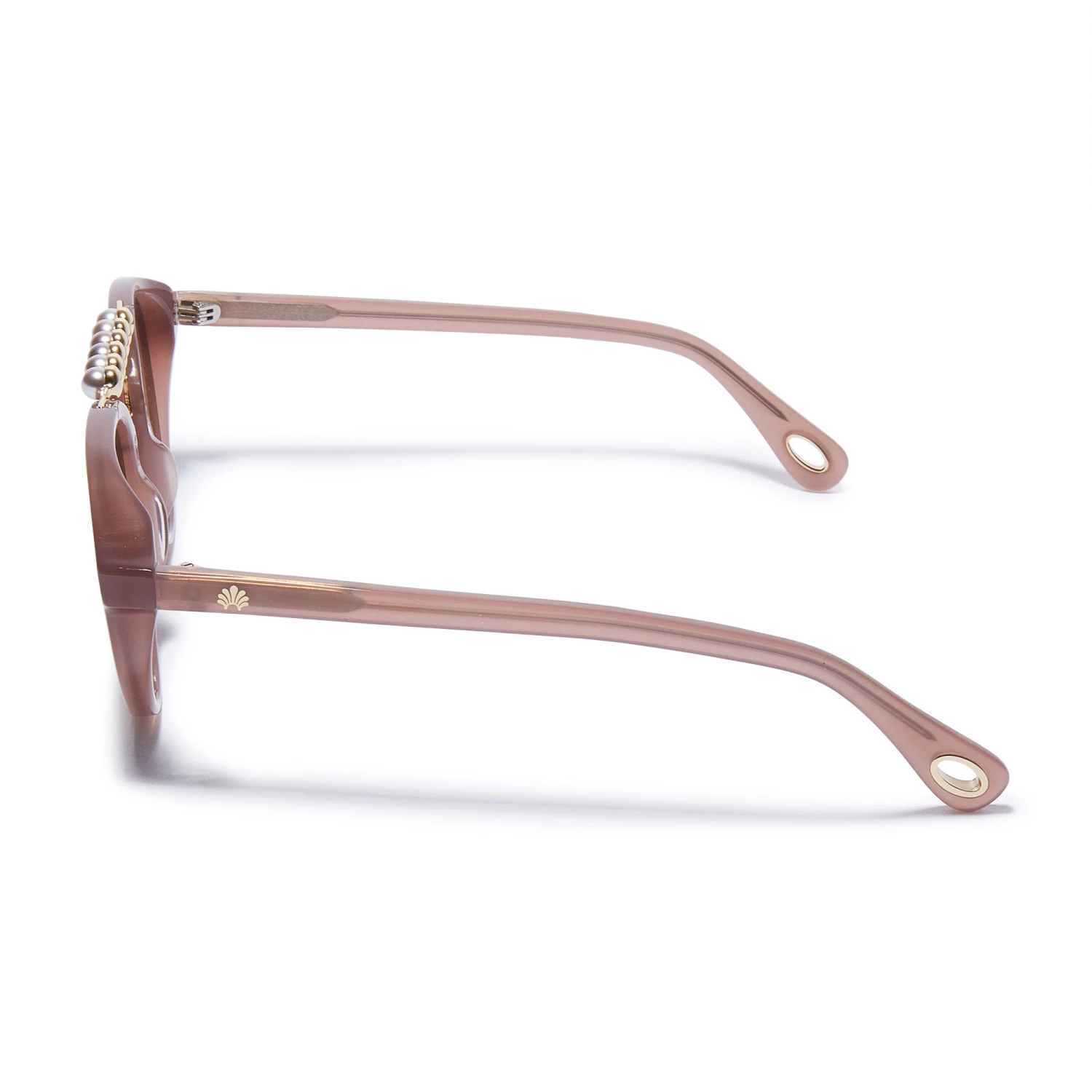 ∙ Hand-swirled mauve acetate featuring a faux pearl bridge