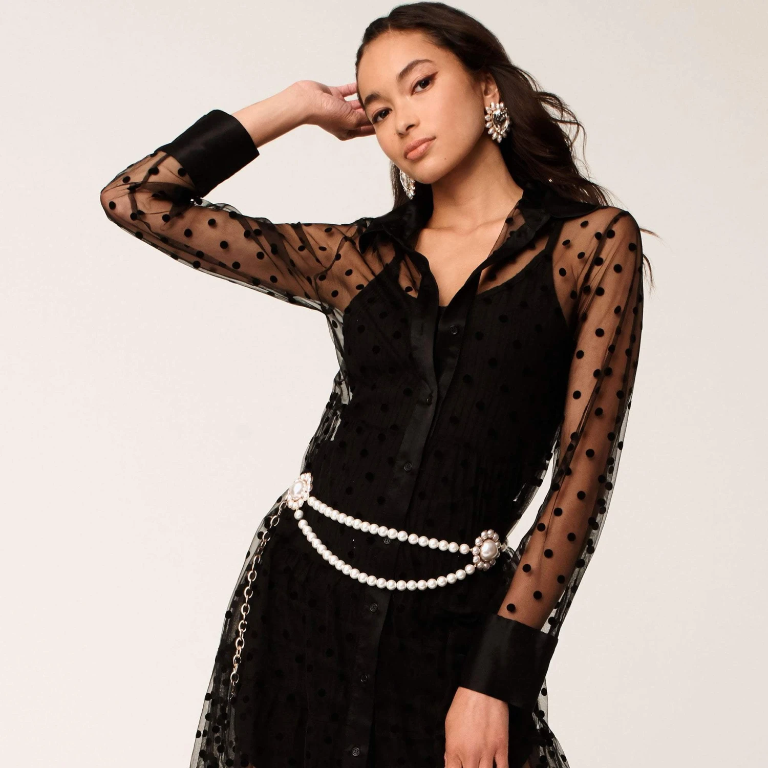 ∙ Connected by oversized pearl brooch