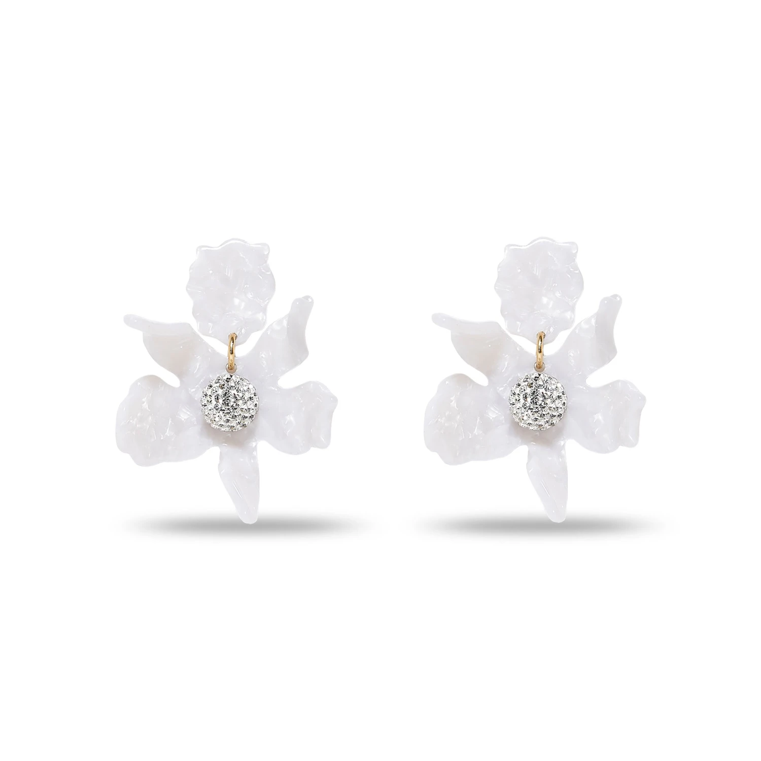 MOTHER OF PEARL SMALL CRYSTAL LILY EARRINGS
