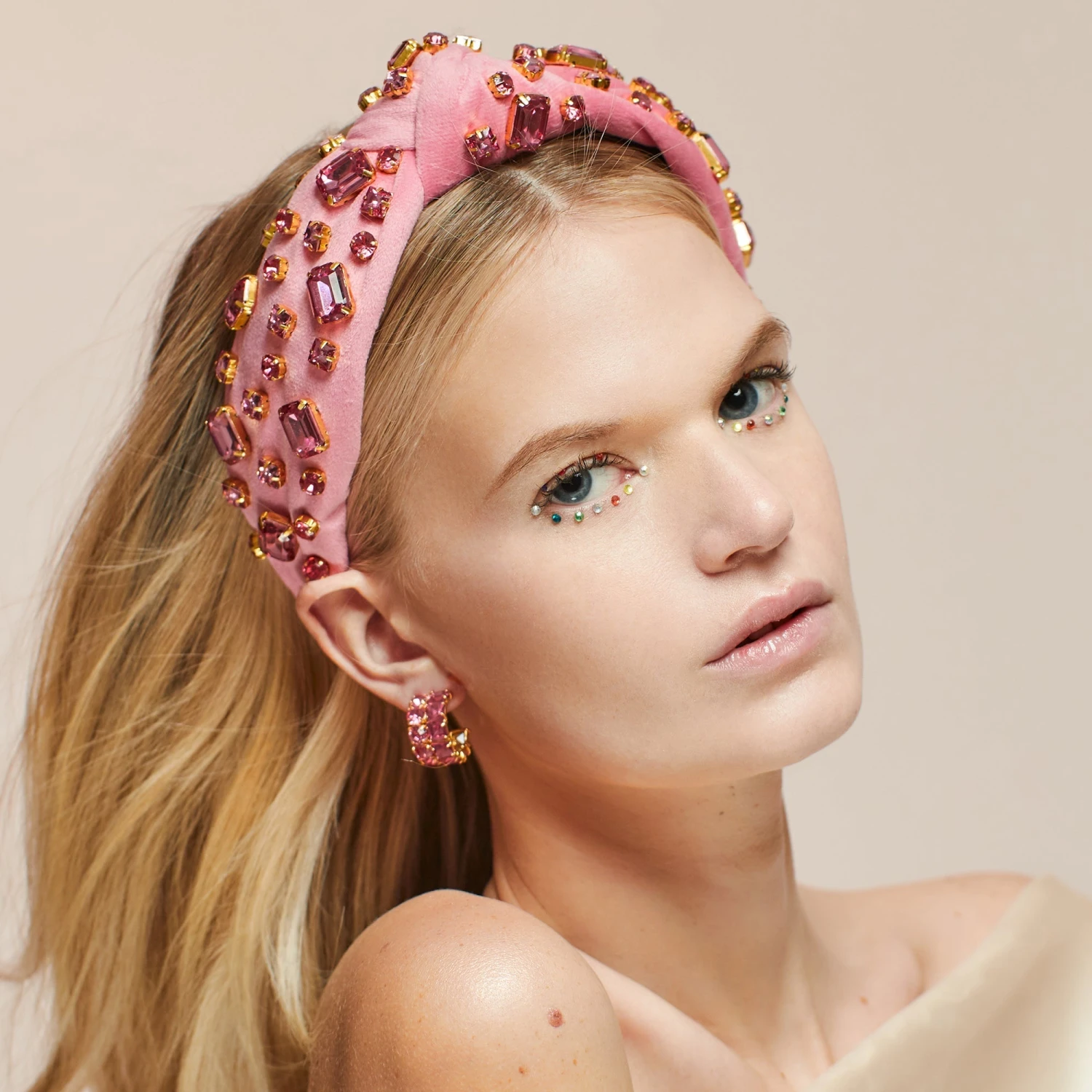 OCTOBER TOURMALINE RECTANGLE CRYSTAL VELVET KNOTTED HEADBAND