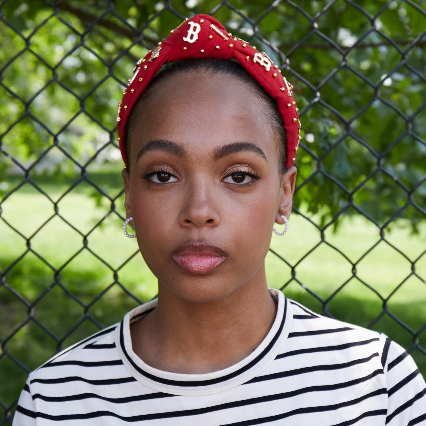 RED BOSTON RED SOX EMBELLISHED KNOTTED HEADBAND