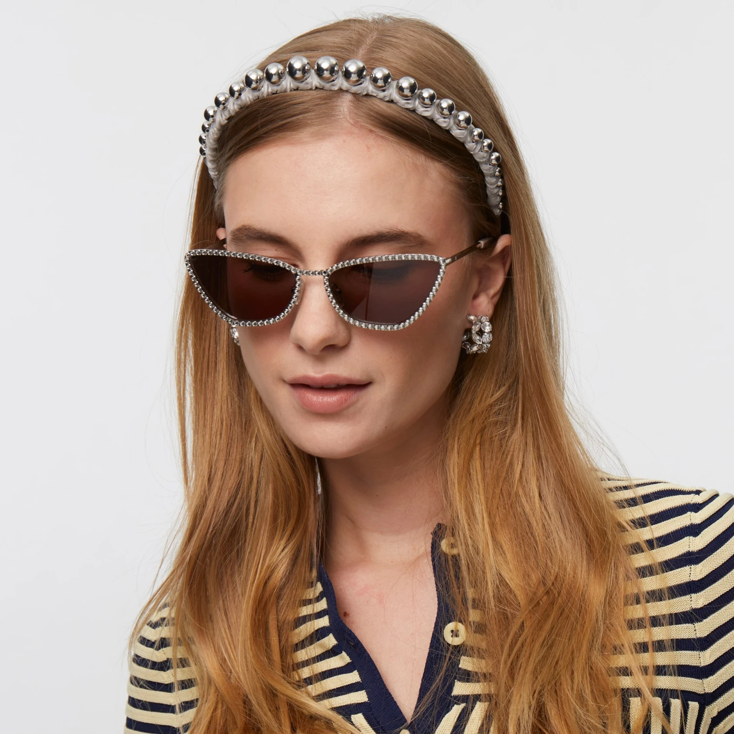 Our slim headband made with ribbon wrapped around a row of beads.