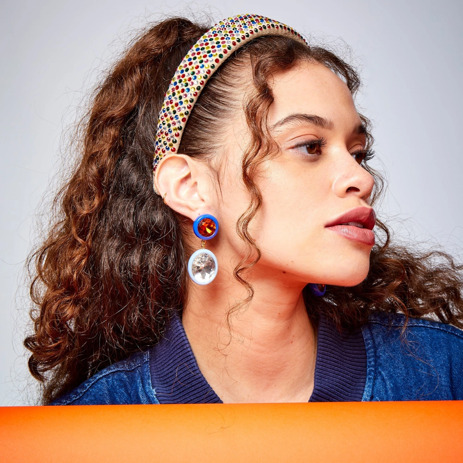 Our asymmetrical gem drop earrings.